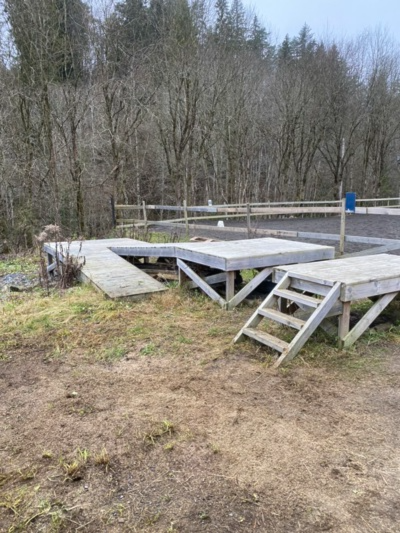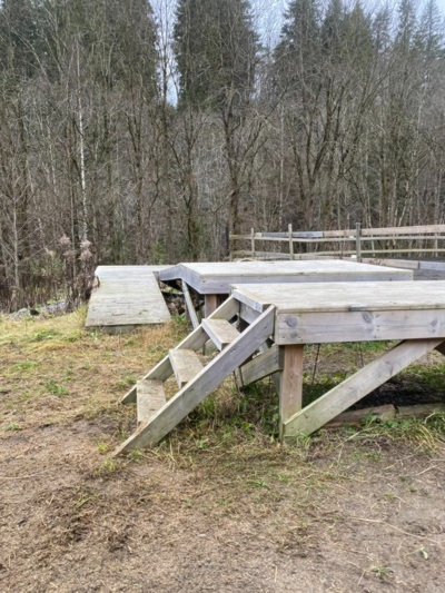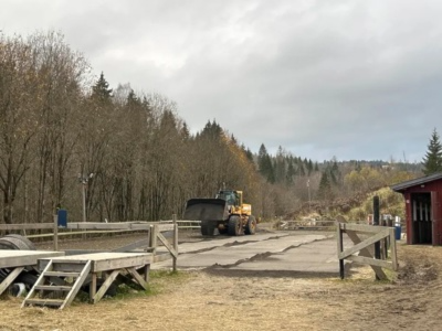 Rullestolrampen med den nye ridebanebunnen i bakgrunnen, høst 2024