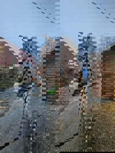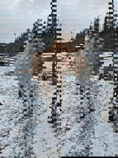 Jeg er rideskolens nyeste tilskudd, så er fortsatt under opptrening. Jeg har gått som privathest tidligere, så er spent på min nye jobb som skolehest. Jeg liker å føle meg nyttig og har blitt brukt i undervisning tidligere. Har også tatt kjøreoppdrag og vært med i teateroppsetninger - så jeg kan mye forskjellig!